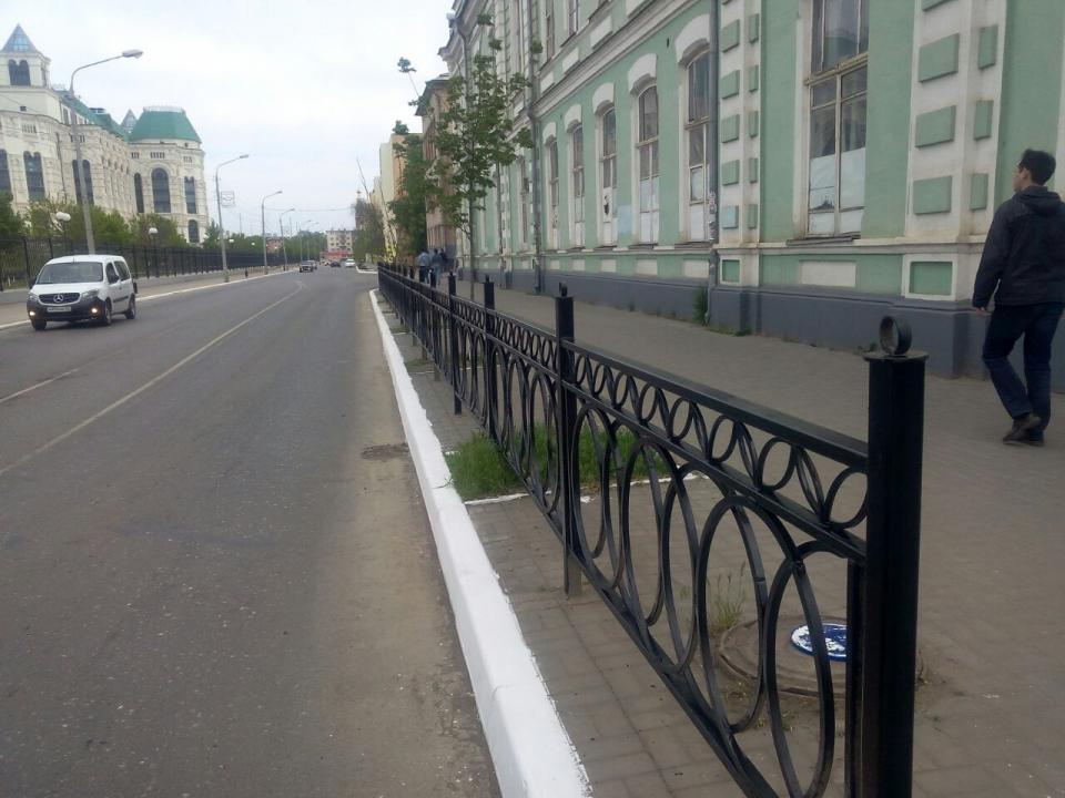 по адресу: ул. Коммунистическая – произведена покраска леерных ограждений, побелка бордюров и деревьев приствольной части;