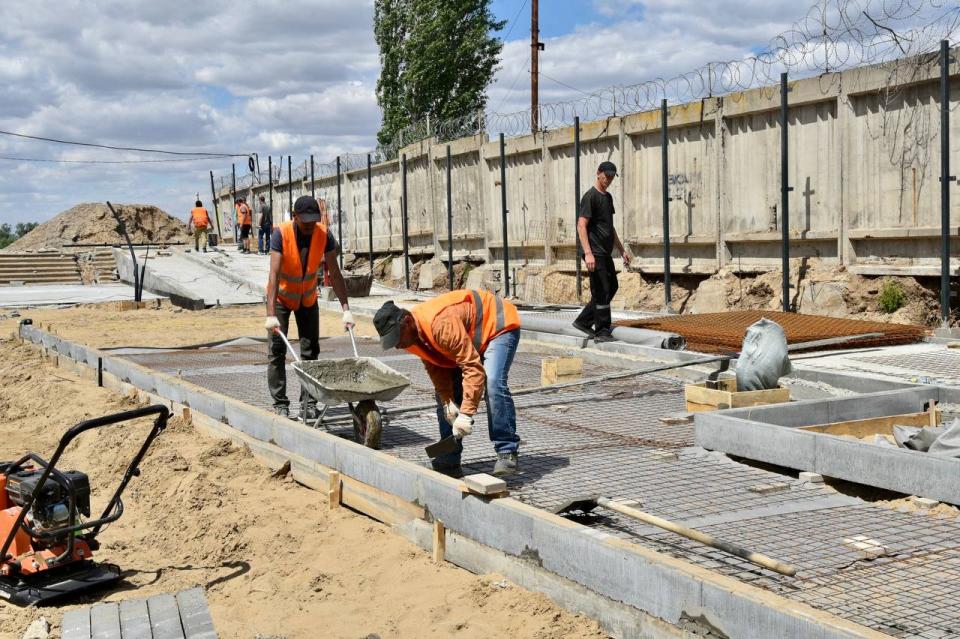 Накануне объект посетили заместитель председателя Правительства Астраханской области Михаил Богомолов, временно исполняющий полномочия главы города Олег Полумордвинов и председатель Городской Думы муниципального образования «Город Астрахань» Игорь Седов. По словам подрядчика, основание будущего общественного пространства готово на тридцать процентов. Кроме этого установлены стойки, на которые будет крепиться декоративный материал вдоль забора коммунального предприятия. Специалисты уложили кабели для наружного освещения набережной, а так же смонтировали поливочный водопровод.
