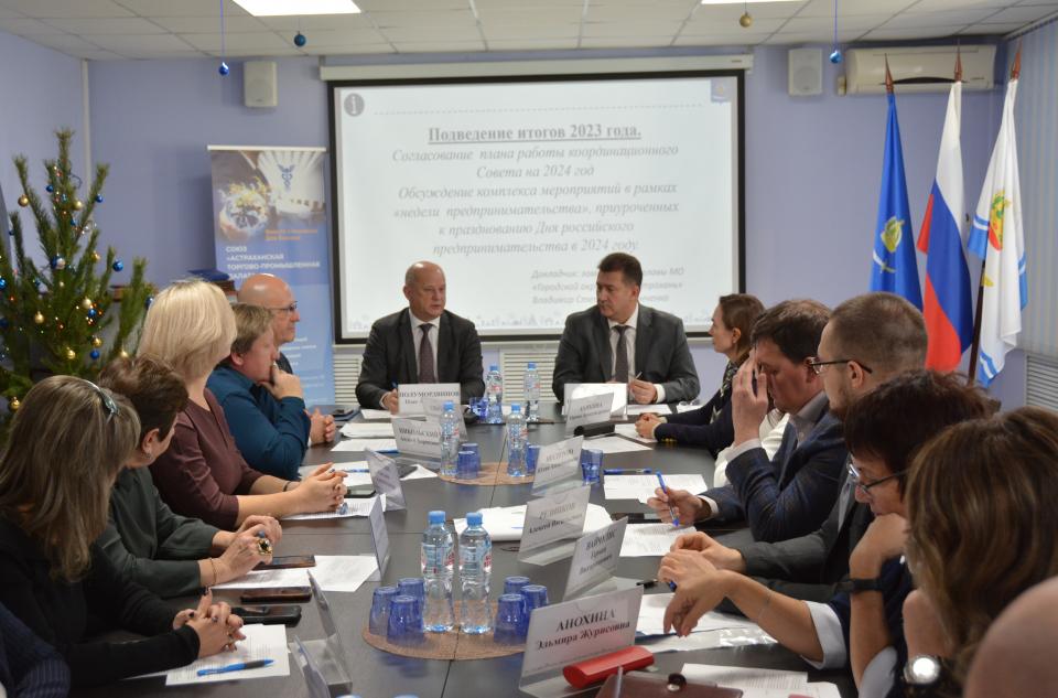 В Астраханской торгово-промышленной палате состоялось расширенное заседание координационного совета в области развития малого и среднего предпринимательства под председательством главы областного центра Олега Полумордвинова. Собравшиеся подвели итоги уходящего года и утвердили план работы на следующий.