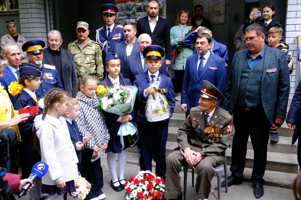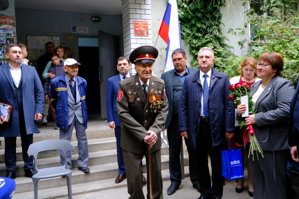Торжественное мероприятие, приуроченное ко дню рождения участника Великой Отечественной войны, Сталинградской битвы, Почетного ветерана Астрахани, председателя Совета ветеранов 62-й Армии прошло сегодня у его дома.