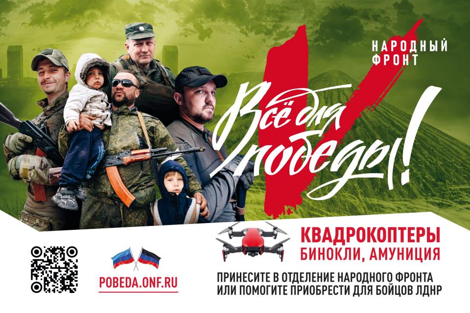 Астраханцы могут присоединиться к сбору гуманитарной помощи для солдат и жителей Луганской и Донецкой народных республик. Это возможно в рамках проекта «Всё для Победы!», который запустил Общероссийский народный фронт.