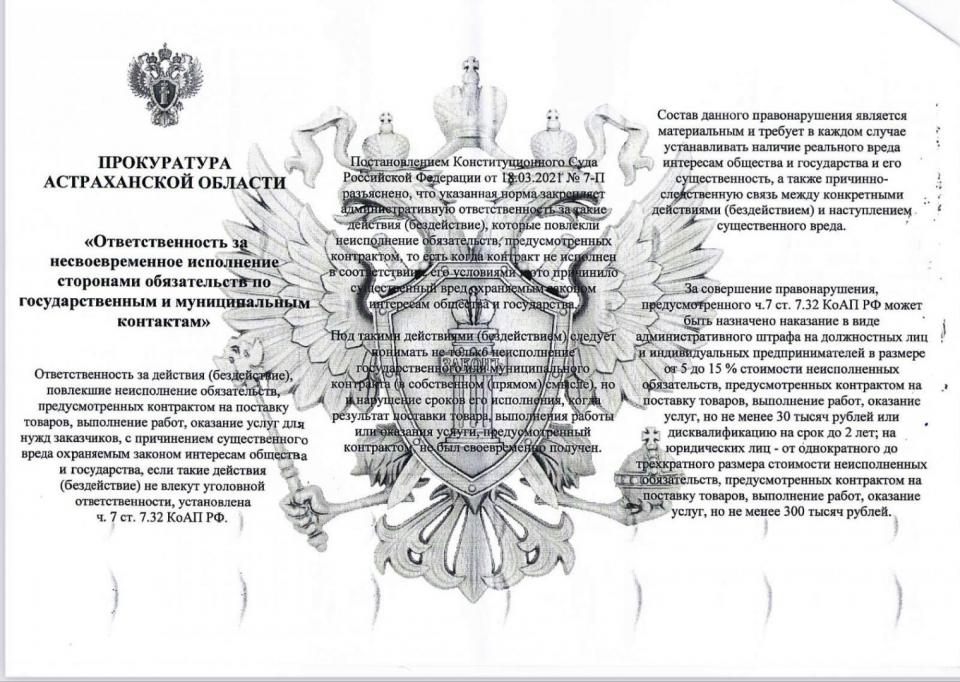 Памятка на тему : "Ответственность за несвоевременное исполнение сторонами обязательств по государственным и муниципальным контрактам"