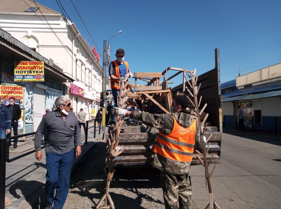 Сотрудниками администрации Кировского района совместно с представителями отдела по исполнению административного законодательства УМВД России, УВД ППС по Кировскому району, МБУ г. Астрахани "Чистый город" проведены рейдовые мероприятия на территории, прилегающей к рынку "Большие Исады", пер. Базарный. Вывезено 2 грузовика прилавков и торгового оборудования, установленных незаконно.