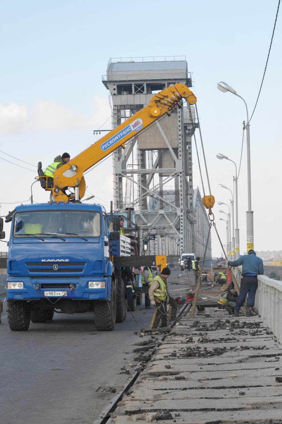 Продолжаются ремонтные работы на пешеходной части совмещенного моста через Волгу. Заказчиком и инвестором является ОАО РЖД. Ввиду значимости объекта контроль за проведением работ усилен.