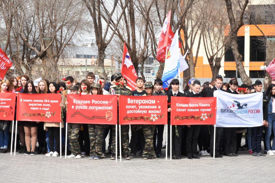 Как отметил председатель общественной организации по патриотическому, правовому и физическому развитию молодежи Александр Даиров, Вахта Памяти – это движение, целиком и полностью посвященное годам Великой Отечественной войны. Основная цель экспедиций - поиск останков погибших воинов, восстановление имен пропавших без вести в военные годы. При участии астраханских поисковиков более чем за 20 лет обнаружено и захоронено больше 28 тысяч солдат и офицеров, отдавших жизнь за свою Родину, установлены имена более трех тысяч пропавших без вести.