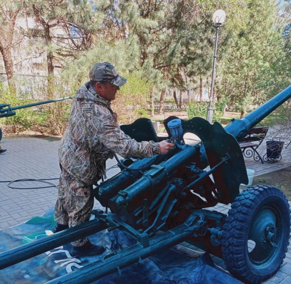 Уже покрашен танк Т-34 и артиллерийские орудия на бульваре Победы. В ближайшие дни аналогичные работы пройдут на мемориальном комплексе «Журавли» в сквере Победы на одноименной улице.