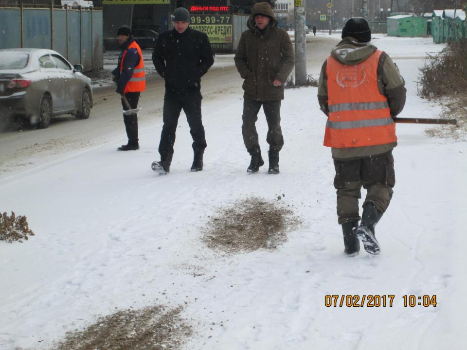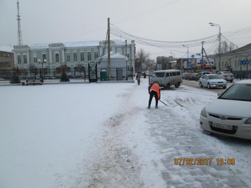 Сотрудники администрации Ленинского района совместно с МБУ г. Астрахани «Чистый город» произвели уборку снега с магистральных улиц района. По ул. Ак. Королева, Бульвар Победы и сквера им. 60-летия Сталинградской битвы были зачищены и посыпаны песко-соляной смесью тротуары. При выполнении работ было задействовано 5 единиц спецтехники и более 30 дорожных рабочих.