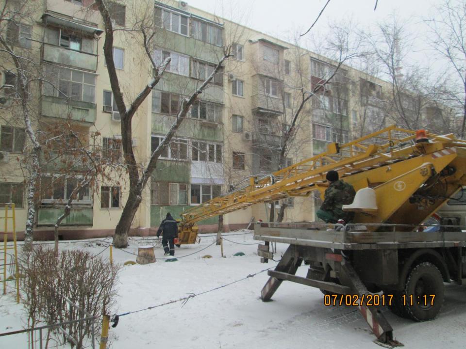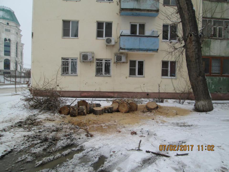 Силами МБУ г. Астрахани "Зеленый город" произведена санитарная опиловка аварийных деревьев между многоквартирными жилыми домами №52 и №54 по ул. Коммунистическая.
