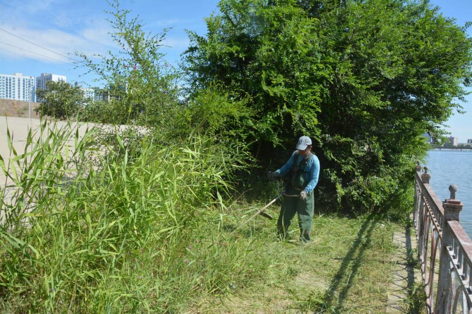 Работы по озеленению, начатые на прошлой неделе, продолжились сегодня вдоль Варвациевского канала по Набережной Приволжского затона на участке от Донецкого до Старого моста. Там специалисты МБУ «Зеленый город» обрезали поросль у деревьев, чтобы придать им опрятный вид, а также скосили камыш и сорную растительность на пешеходной зоне.