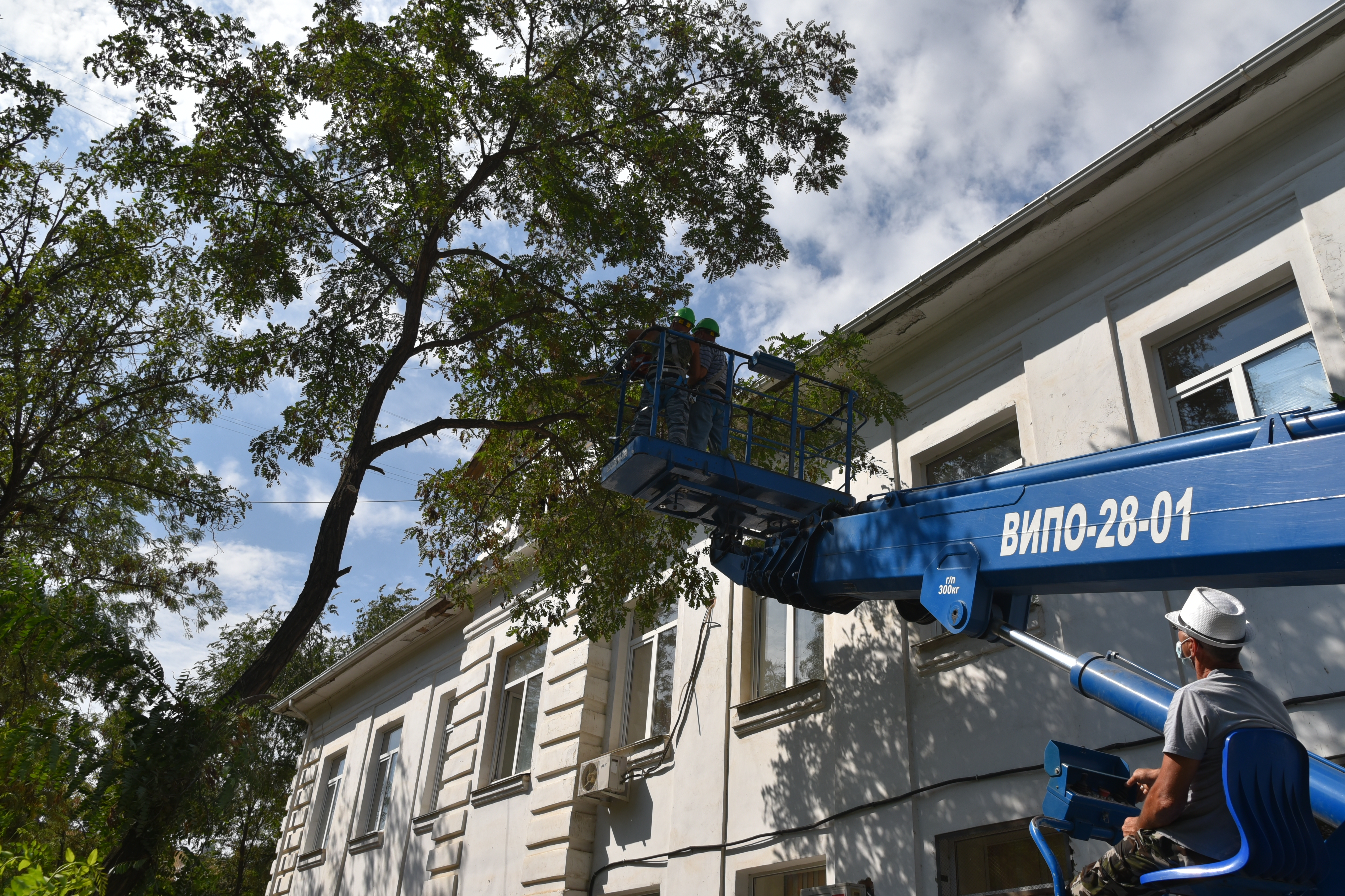 Астраханские коммунальщики помогают учителям готовить к началу нового учебного года территории общеобразовательных учреждений. Работники муниципального предприятия «Зеленый город» проводят санитарную обрезку зеленых насаждений и снос аварийных деревьев. «Проводим опиловку в общеобразовательных учреждениях именно в летнее время, когда в них нет детей. К 1 сентября стараемся все работы выполнить. К этому моменту во дворах семи школ Астрахани мы уже обрезку завершили. В ближайших планах работы еще в четырех дворах», - рассказала мастер производственного участка по обрезке деревьев МБУ «Зелёный город» Марина Аделова. В общей сложности с начала лета на территории учебных заведений проведена санитарная обрезка около ста аварийных деревьев.