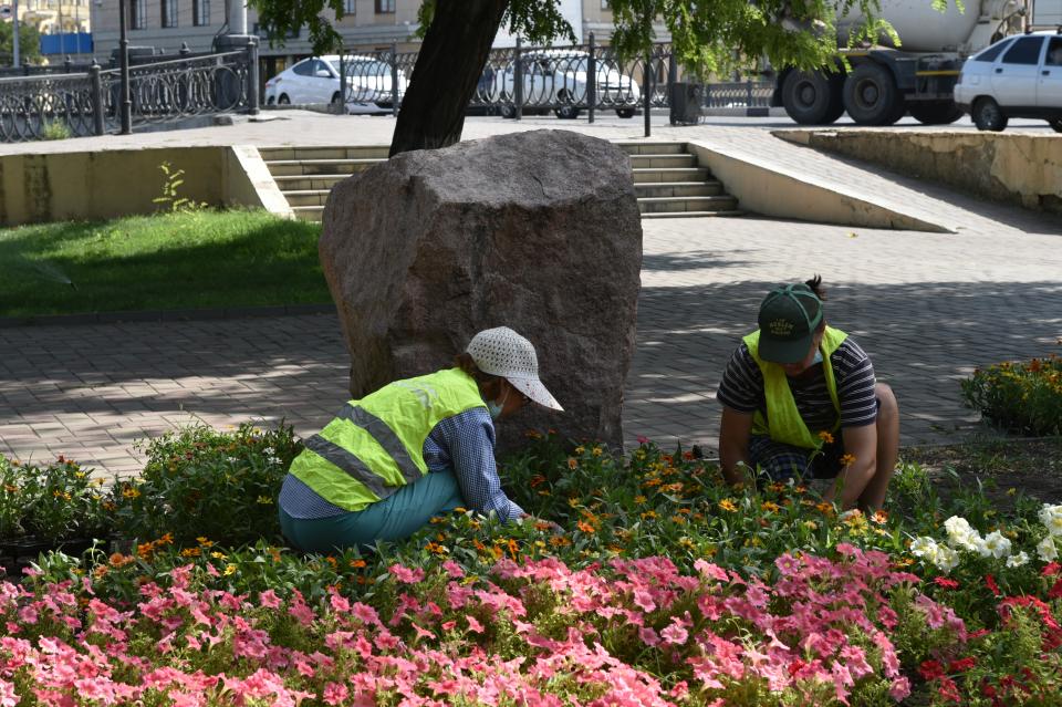 Жаркие дни вносят коррективы и в проведение уходных работ за городскими клумбами. Специалисты корректируют график полива, занимаются подсадкой цветов, готовятся к высадке осенней цветочной рассады. «Мы делаем все возможное, чтобы сохранить рассаду. Перешли на специальный режим полива в общественных пространствах – поливаем только утром или вечером. Что касается тепличного хозяйства, то там стараемся рассаду затенять, укрывать. Рассчитываем высадить еще двести тысяч цветов. К примеру, хризантем заготовили около трех тысяч», - рассказала начальник тепличного участка МБУ «Зелёный город» Наталья Гейн. Сегодня вторичную подсадку цветов специалисты провели в сквере Гейдара Алиева. Завтра работы развернутся на клумбах в парке Ленина в поселке Казачий.