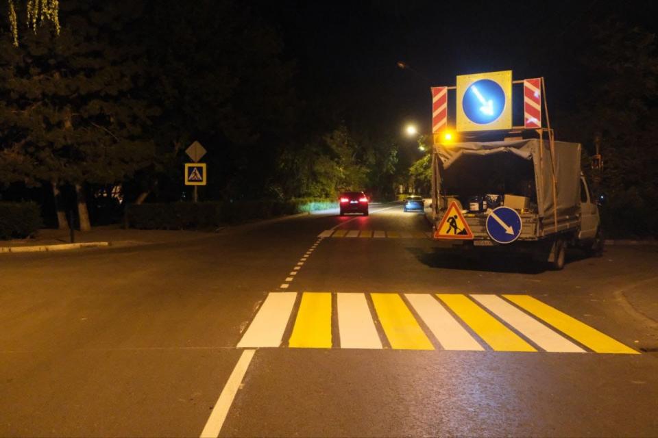 Минувшей ночью на ул. Бульвар Победы подрядная организация приступила к нанесению разметки - это один из завершающих этапов ремонта. Ранее здесь уже заменили покрытие на проезжей части и тротуаре. Учитывая высокий транспортный поток на этом участке, работы ведутся преимущественно в ночное время. Администрация города обновляет дорогу в рамках нацпроекта "Инфраструктура для жизни".