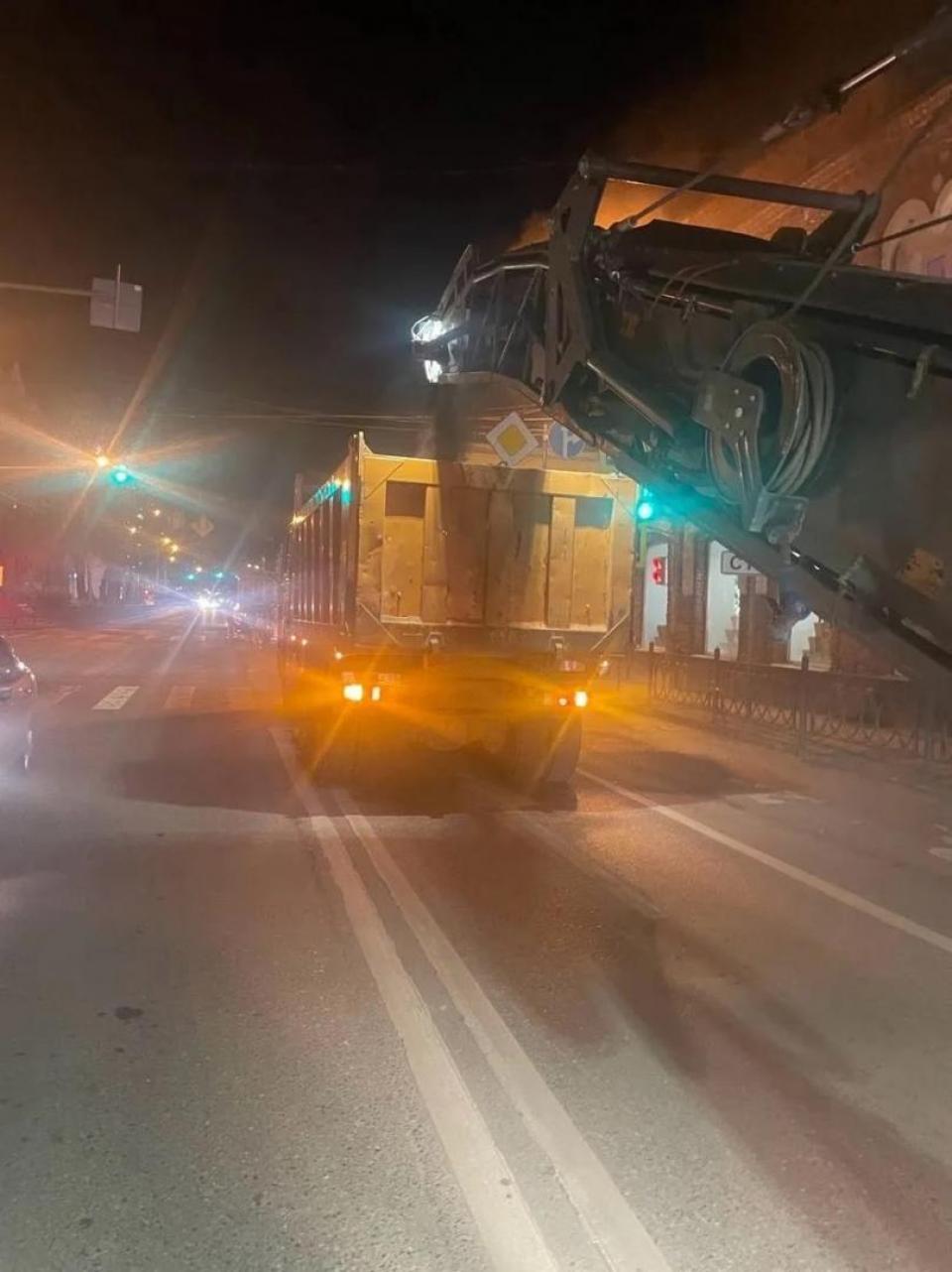 Работы стартовали на полуторакилометровом участке между Красной Набережной и Набережной 1 Мая. Сегодня в ночь до начала дождя дорожники успели отфрезеровать покрытие значительной части улицы.