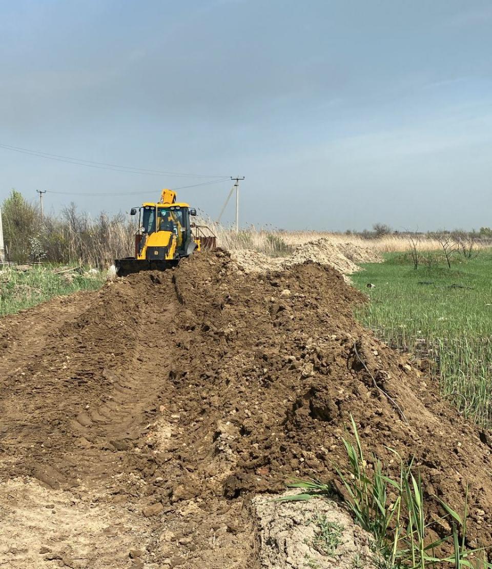 По обращениям жителей СНТ «Труд» о возможном подтоплении территории со стороны ерика Перекатного городскими властями с привлечением сил социально ориентированных предприятий вдоль объездной дороги был сформирован земляной вал высотой 1,5 метра.