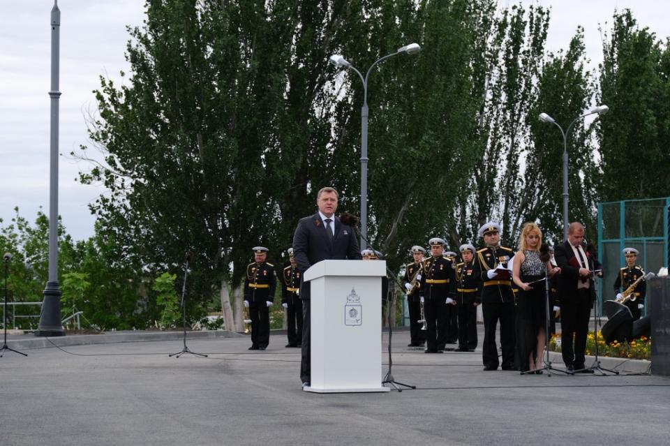 Губернатор области Игорь Бабушкин и исполняющая обязанности главы администрации Астрахани Мария Пермякова возложили цветы к Вечному огню в Братском саду. Также сегодня на территории центра морской и физической подготовки ЦСКА был открыт памятник морякам Каспийской и Волжской военных флотилий, вставших на защиту Родины в годы Великой Отечественной войны. Экспонатом мемориального комплекса послужил военный катер АКА-202 «Шмель» проекта 1204. У его подножия был зажжён Вечный огонь. В торжественной церемонии приняли участие первые лица области и города. К присутствующим обратился глава региона Игорь Бабушкин. «Для меня большая честь поздравить вас с праздником 75-й годовщины Победы в Великой Отечественной войне, к ветеранам, морякам-каспийцам и всем астраханцам. Бессмертный подвиг нашего народа, защитившего мир - наше историческое достояние. Астраханцы – достойные сыны своего Отечества. 160 тысяч человек ушли отсюда на фронт. Больше половины не вернулись с полей сражения. Пройдя дорогами войны 2,5 тысячи километров, астраханские части штурмовали Берлин. Наши солдаты оставили свои подписи на стенах поверженного Рейхстага. Мы этого никогда не забудем», - отметил губернатор Игорь Бабушкин в своём выступлении.