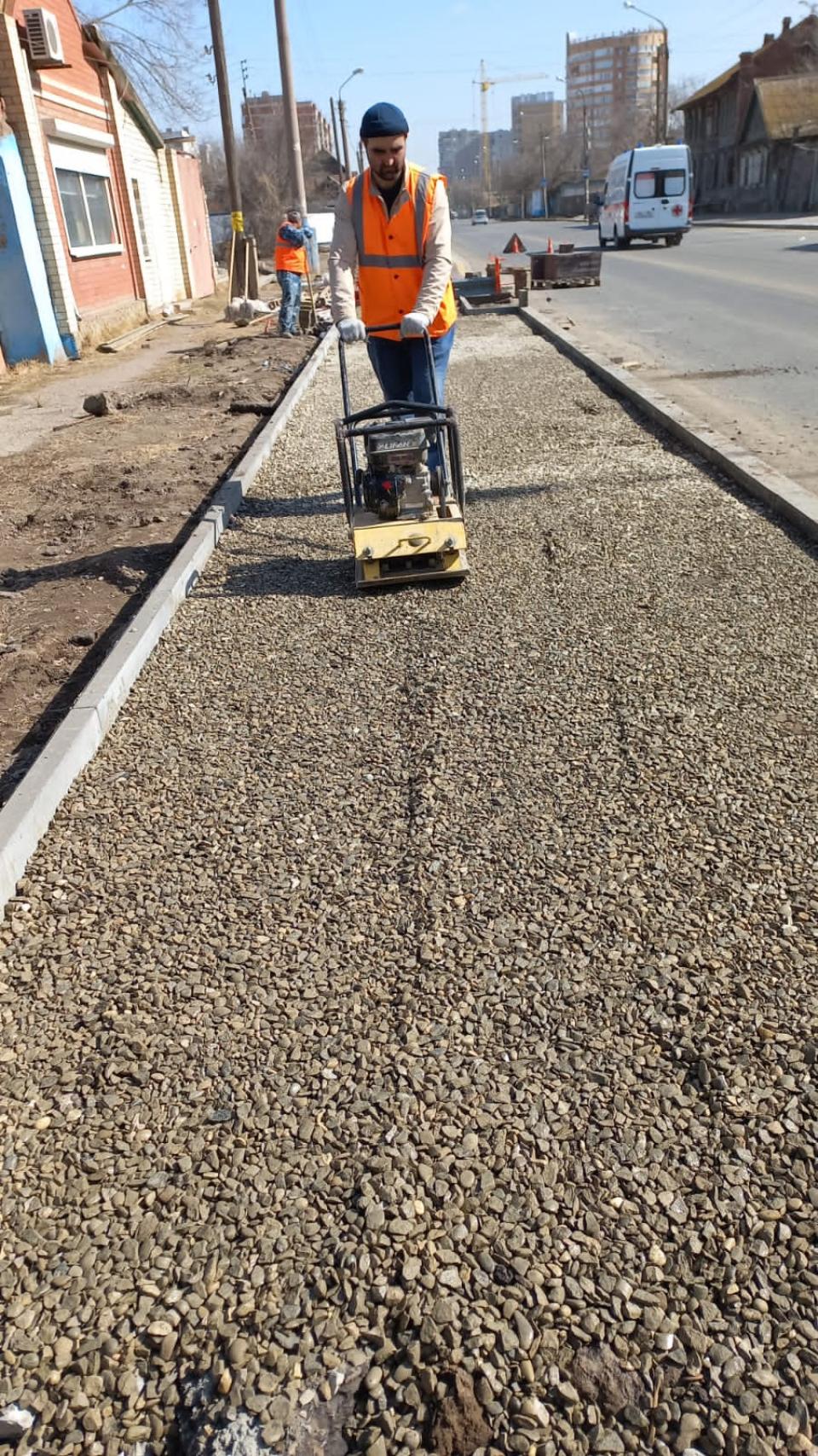 Сейчас специалисты занимаются ремонтом пешеходных зон. В частности, обустраивают основание тротуаров и укладывают плитку. К обновлению Софьи Перовской подрядная организация приступила в конце прошлого года. Объект переходящий – полностью работы будут завершены нынешней осенью. Помимо пешеходных зон приведут в порядок и проезжую часть, где старое покрытие уже отфрезеровали и частично уложили первый слой асфальта. Дорогу планируют отремонтировать на всем протяжении, а это более трех с половиной километров.