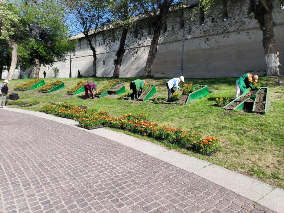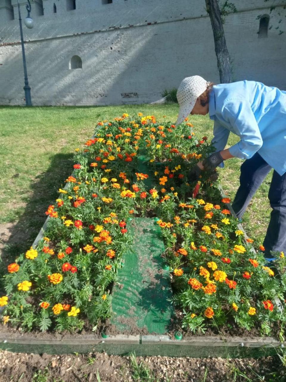 Вместе с косарями сегодня трудились и озеленители. С помощью ярких бархатцев они оформляли конструкцию «Астрахань» на площади Ленина. Ранее в областном центре прошла высадка цветов и деревьев на общественных пространствах.