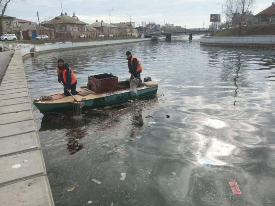 На внутригородских водоемах растаял лед, и коммунальные службы Астрахани приступили к очистке акваторий от мусора c воды. Для уборки специалисты муниципального предприятия «Мосты и каналы» используют лодку.