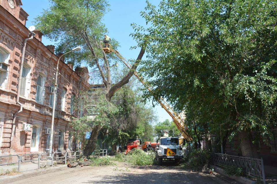 Спиленные ветки тут же, на месте перерабатываются в щепу с помощью дробильной установки. Завершить работы по опиловке планируется в течение двух дней.