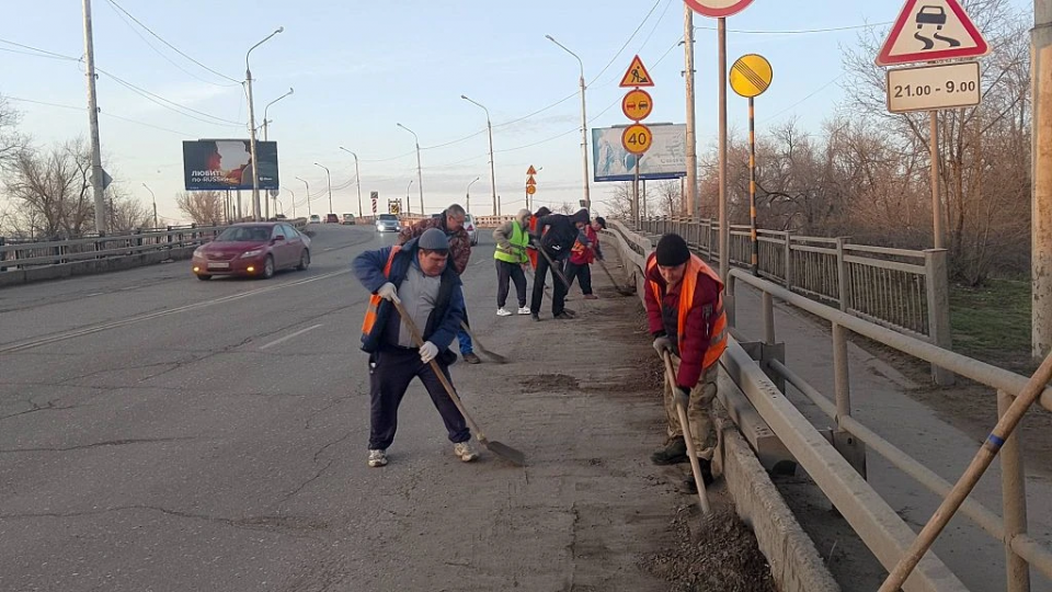 Работы по уборке прошли и на мосту в створе улицы Боевой, а в ближайшие дни зачистку прибордюрных зон проведут также на других городских мостовых сооружениях.