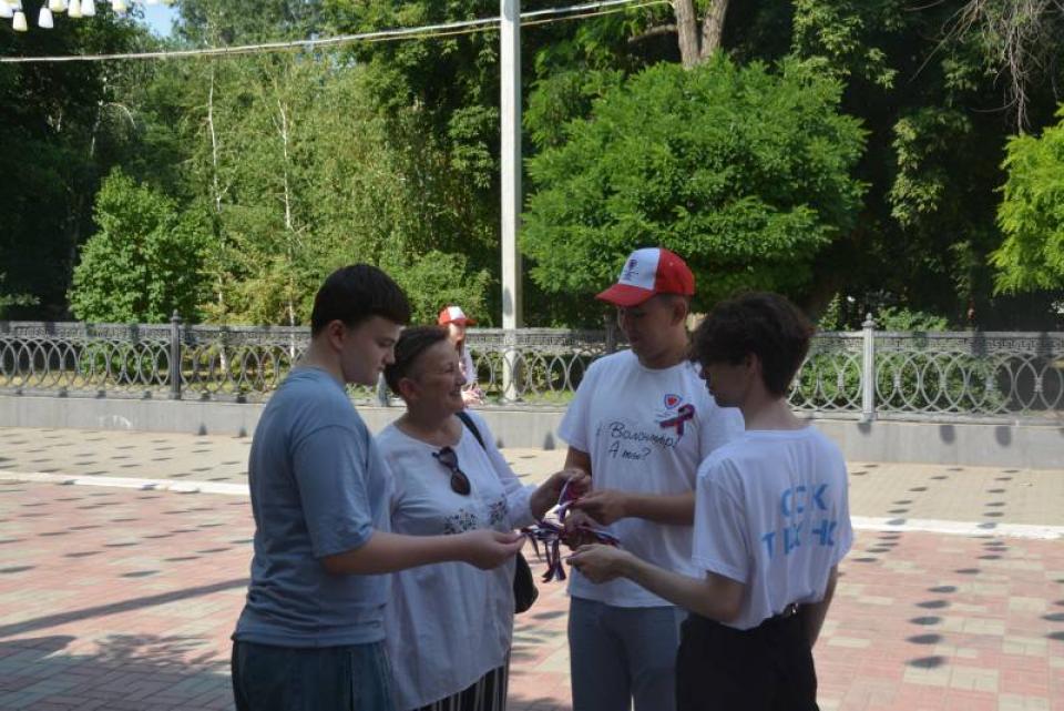 Ленточки с «триколором» на центральных улицах областного центра раздают сотрудники администрации Астрахани совместно с волонтерами. К раздаче приступили накануне. Акцию «Триколор» в преддверии празднования Дня России традиционно организовали городские власти. В планах за два дня раздать около четырех тысяч лент.