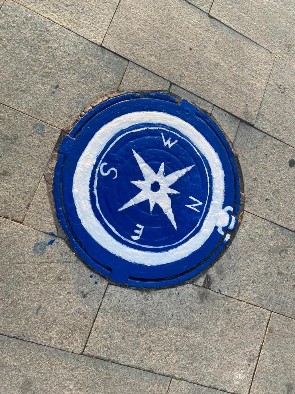 Накануне в рамках творческого проекта «Город – не раскраска» преобразили люки смотровых колодцев у памятника Петру I. На пяти из них появились новые рисунки, ещё два, которые были нанесены несколько лет назад, обновили.