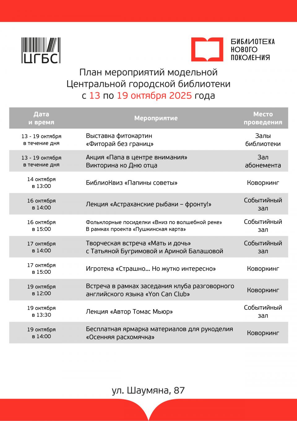 Подробная программа с указанием времени проведения мероприятий в модельных библиотеках в карточках. Стоит отметить, что учреждения такого формата администрация Астрахани открыла в рамках нацпроекта «Культура». Благодаря федеральной поддержке библиотеки были полностью модернизированы.