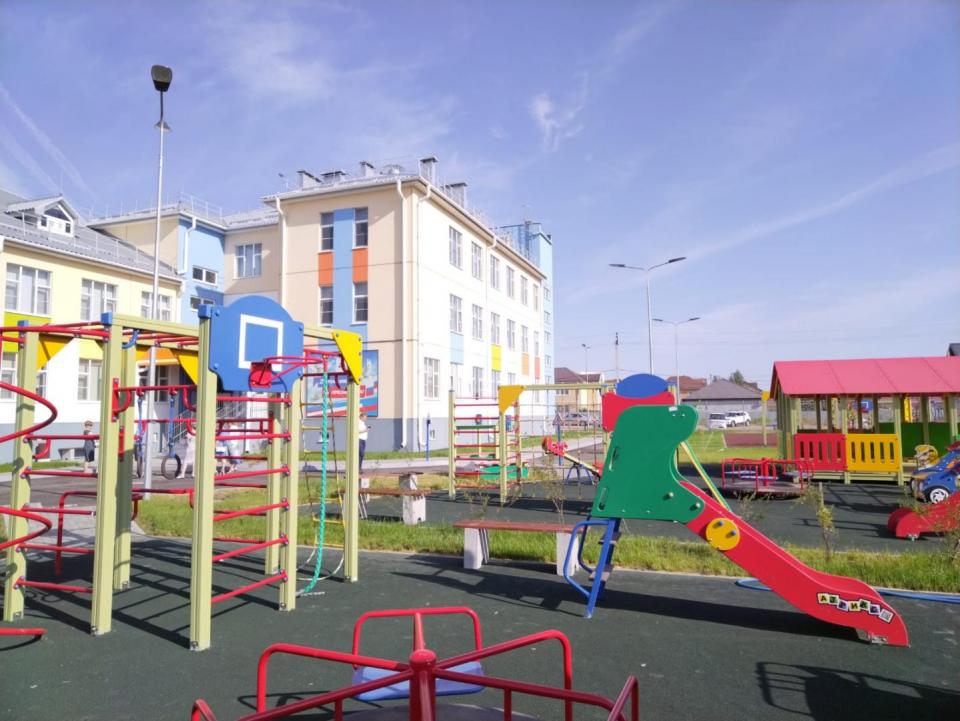 Дошкольное учреждение построено в рамках национального проекта «Демография». В саду установлена новая мебель, оборудование и инвентарь, укомплектован штат сотрудников. Благоустроена территория: на месте бывшего пустыря засеян газон и высажены деревья, пешеходные дорожки вымощены тротуарной плиткой, проезды по территории заасфальтированы, участки для прогулок покрыты резиновым настилом и оснащены беседками и игровыми комплексами. Помимо малых архитектурных форм на территории установлена площадка «Маленький пешеход» для обучения детей правилам дорожного движения.