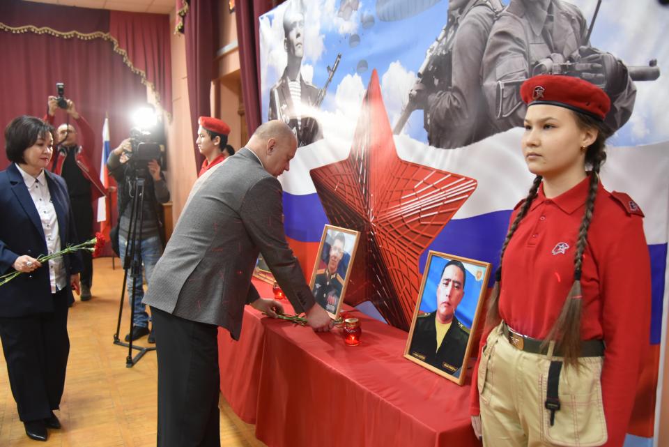 Сегодня в СОШ №27, расположенной в микрорайоне Бабаевского, состоялось торжественное открытие Парты Героя. Она посвящена выпускникам школы Асхату Айсагалиеву, Кириллу Шишмареву и Ильясу Джамансариеву, погибшим в ходе специальной военной операции на Украине. Мероприятие прошло при поддержке администрации Астрахани.