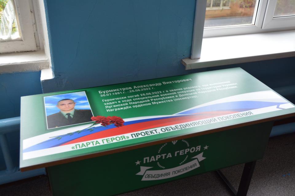 Парту установили в зале Боевой славы школы, где собраны экспонаты времен Великой Отечественной войны и информация о ее участниках. «Сейчас у нас появляются новые герои – те, кто защищают честь и достоинство нашего народа в ходе специальной военной операции. Для подрастающего поколения их подвиг также становится примером мужества, — сказал Олег Полумордвинов. — Ребята, будьте достойны сидеть за этим ученическим столом, любите свою Родину и всегда помните, что благодаря таким людям мы сегодня живём».