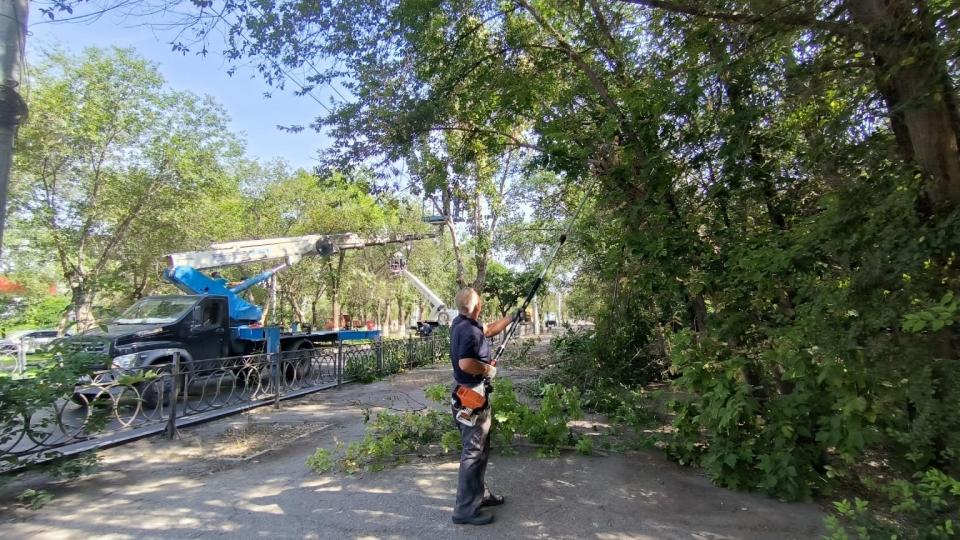Так, вчера продолжилась опиловка деревьев вдоль проезжей части по улице Савушкина. Зеленые насаждения опиливали также на участке от переулка Смоляного до улицы Латышева. "Мы привлекли четыре автовышки, столько же бригад рабочих. Две щеподробильные машины позволили на месте ликвидировать порубочный материал", — рассказал мастер производственного участка МБУ "Зелёный город" Роман Садрей.