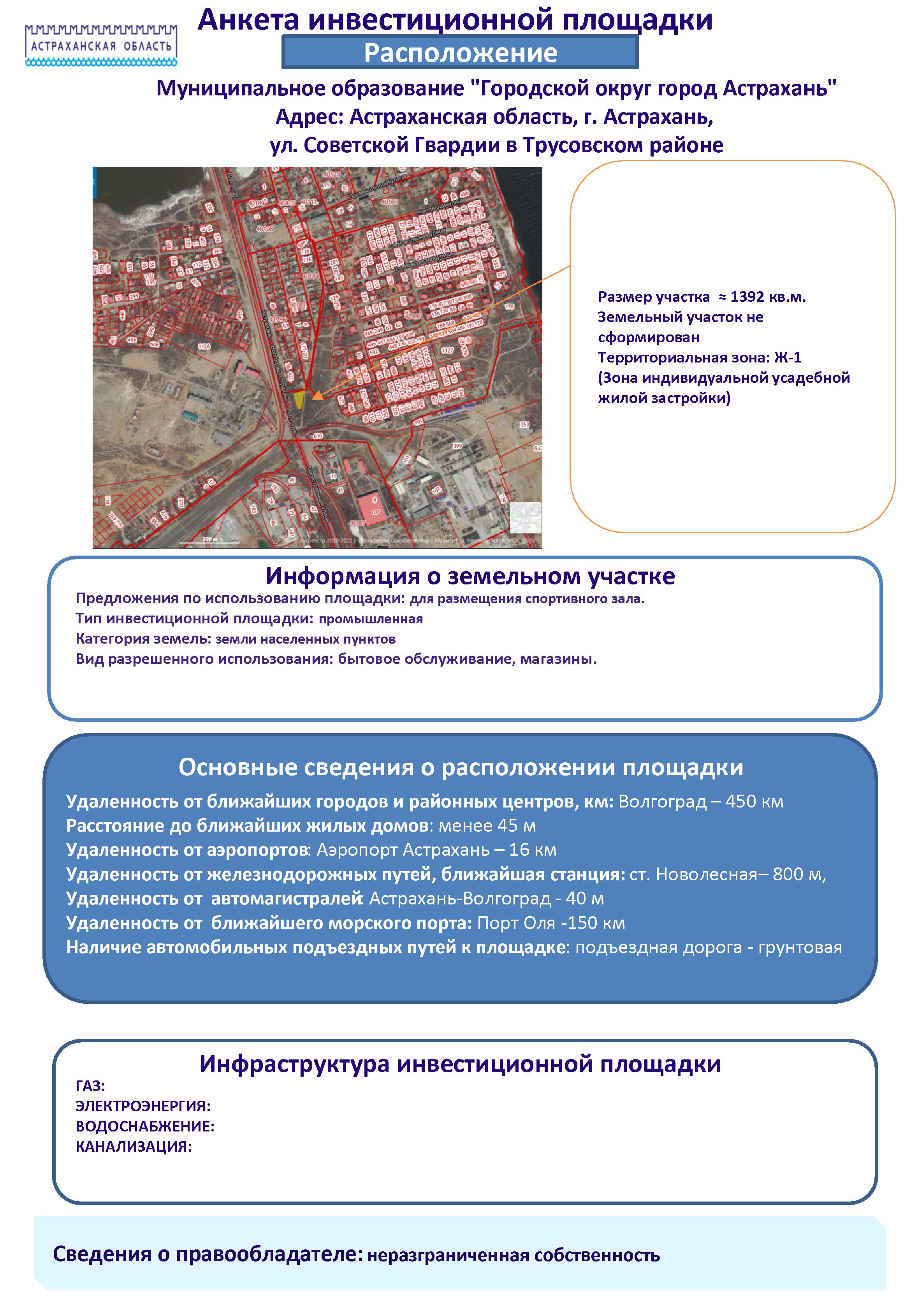 - Анкета инвестиционной площадки Астраханская область, г. Астрахань, ул. Советской Гвардии в Трусовском районе