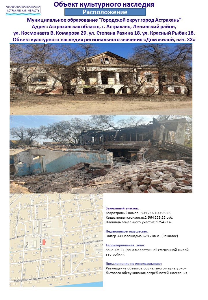 - Анкета инвестиционной площадки , г. Астрахань, ул. Космонавта В. Комарова 29, ул. Степана Разина 18, ул. Красный Рыбак 18