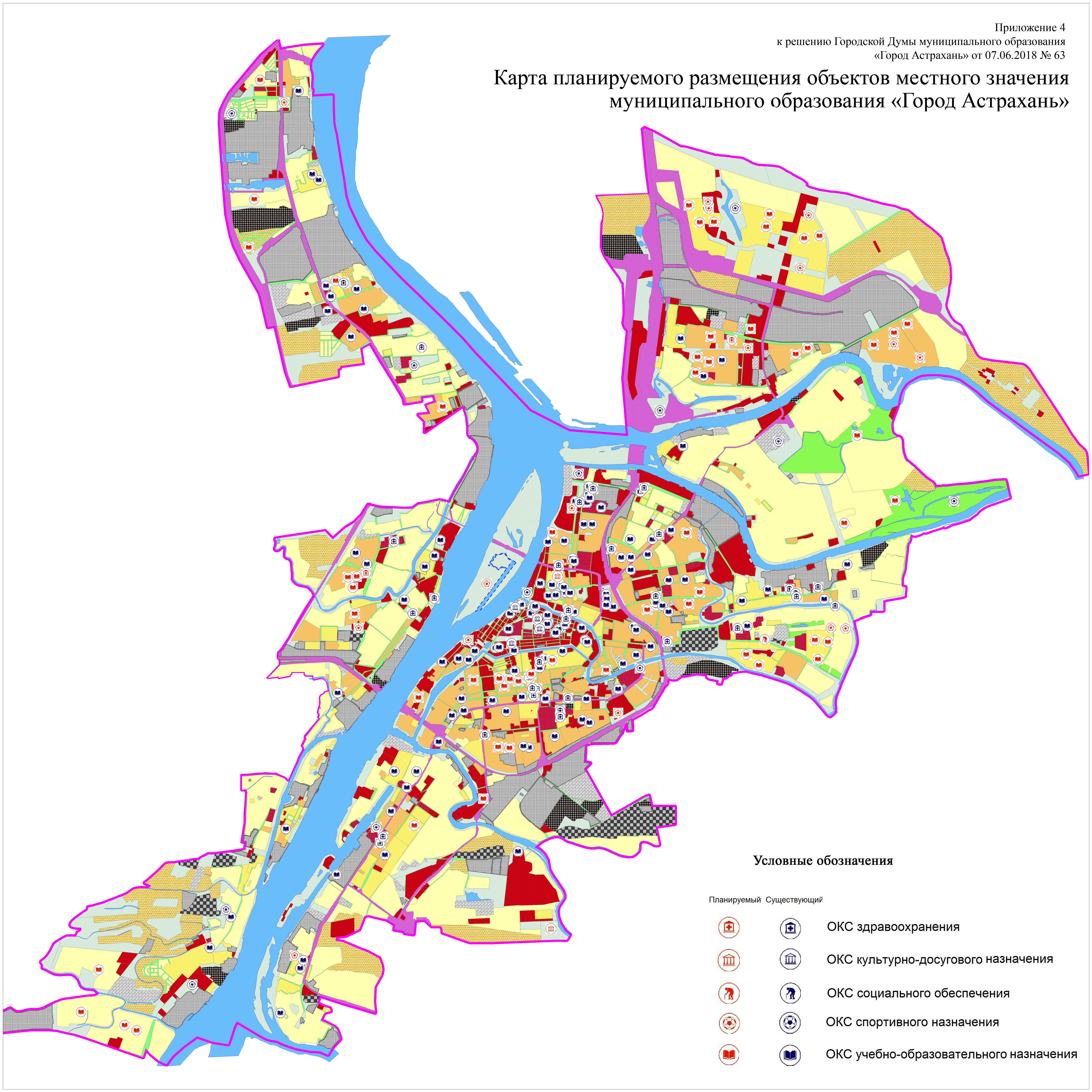 Решение Городской Думы муниципального образования «Город Астрахань» от 07.06.2018 № 63 «О внесении изменений в Генеральный план развития города Астрахани до 2025 года, утвержденный решением Городской Думы муниципального образования «Город Астрахань» от 19.07.2007 № 82» |