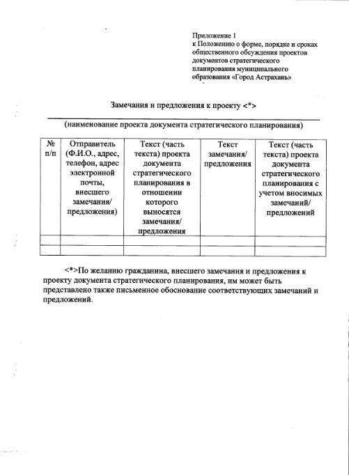 Форма предоставления замечаний и предложений по выносимому на общественное обсуждение проекту документа стратегического планирования |