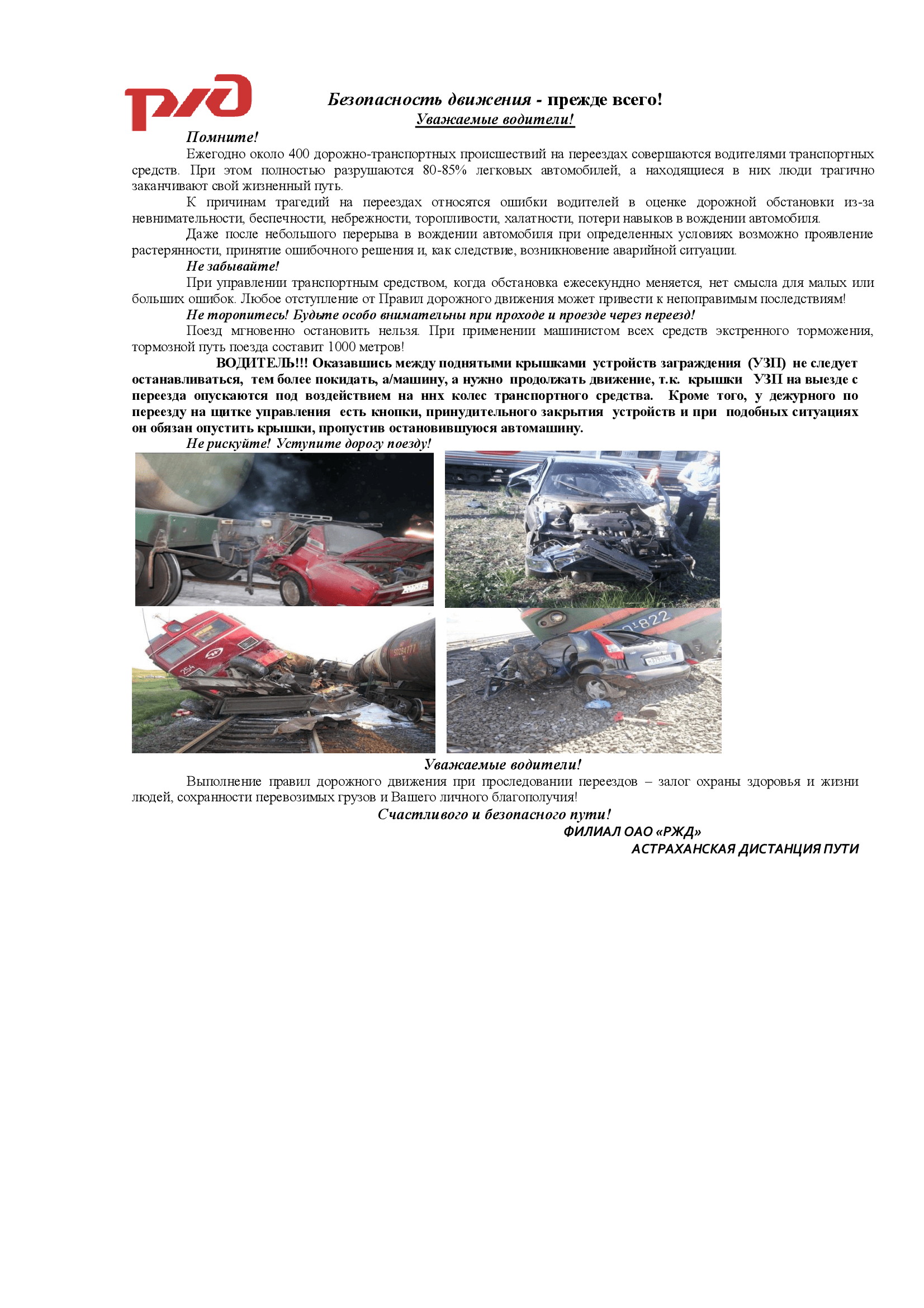 Безопасность движения - прежде всего! РЖД предупреждает!