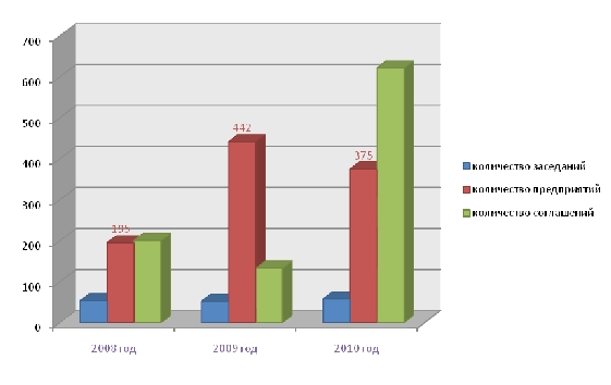 В 2010 г. проведено 58 заседания комиссии, были приглашены руководители 375 субъектов предпринимательской деятельности.