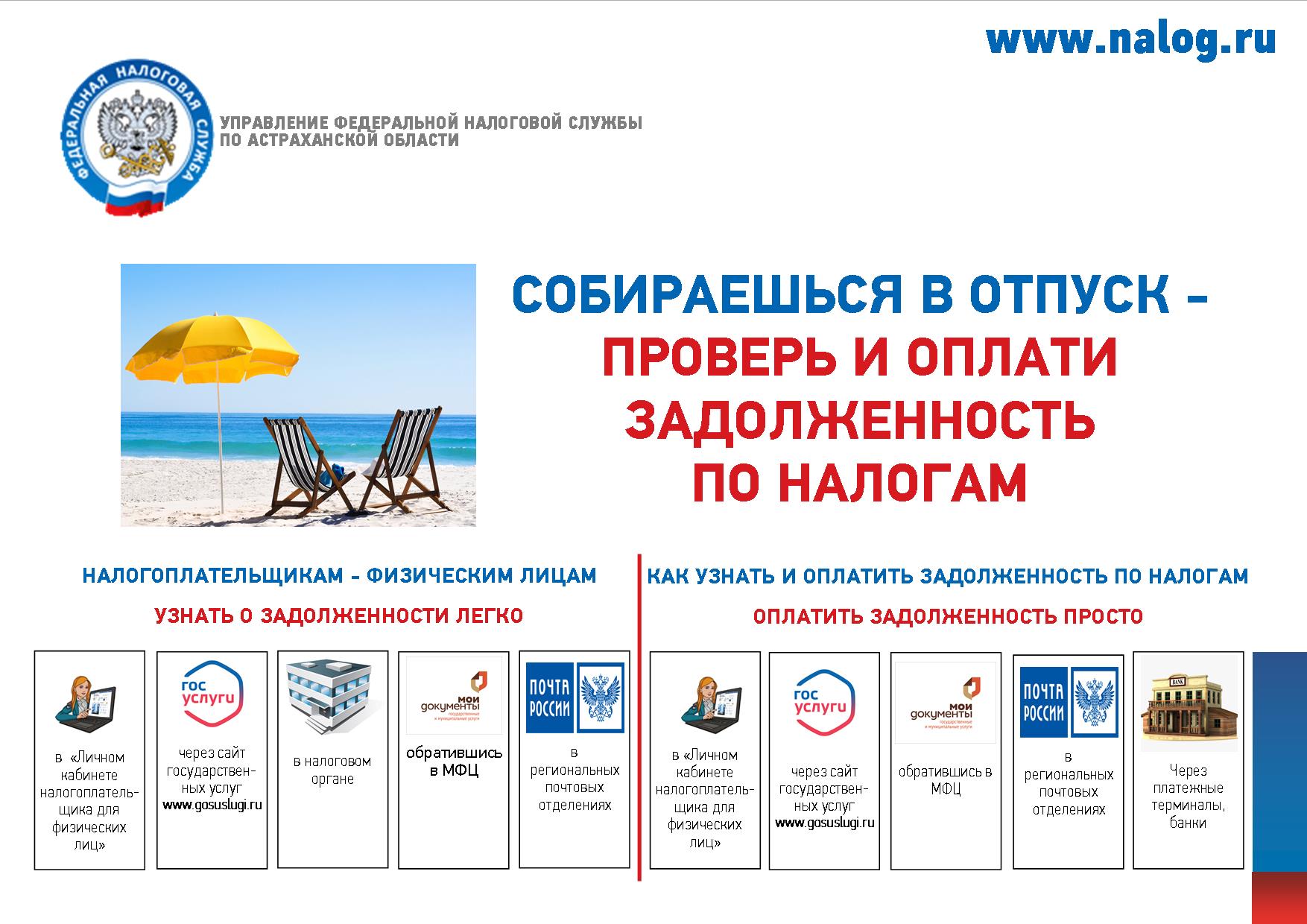Собираешься в отпуск - проверь и оплати задолженность по налогам.