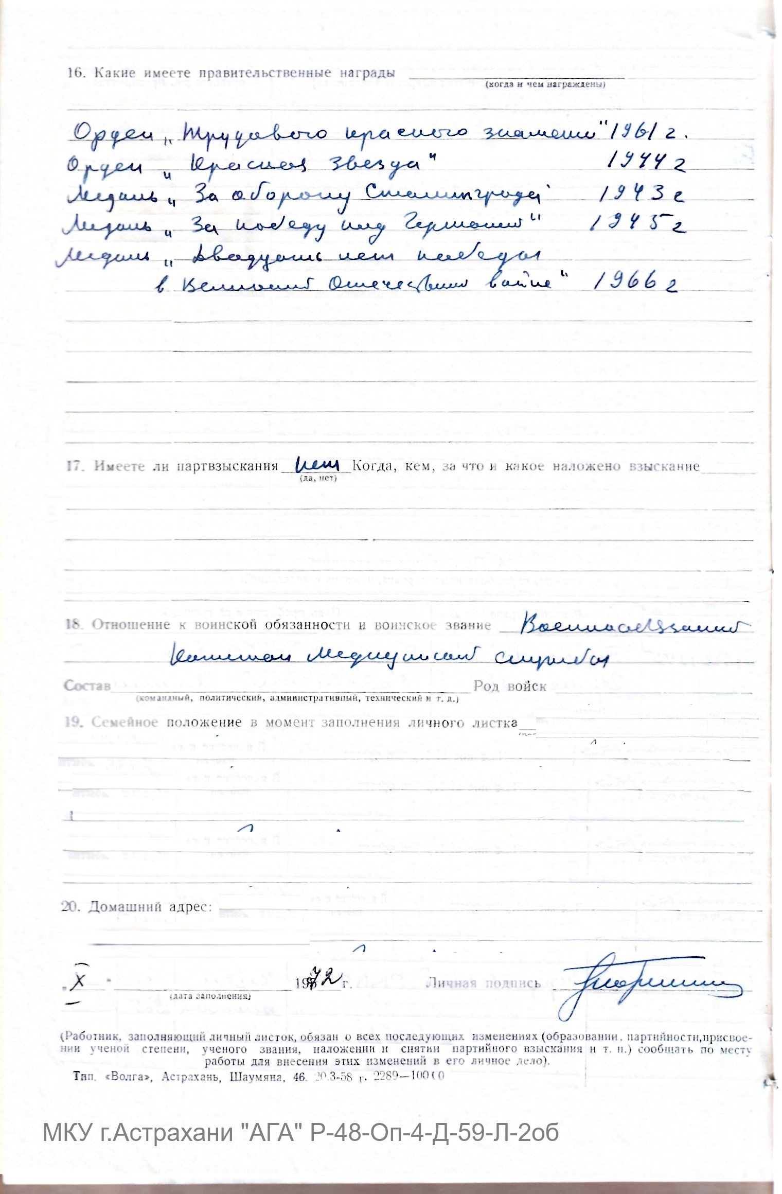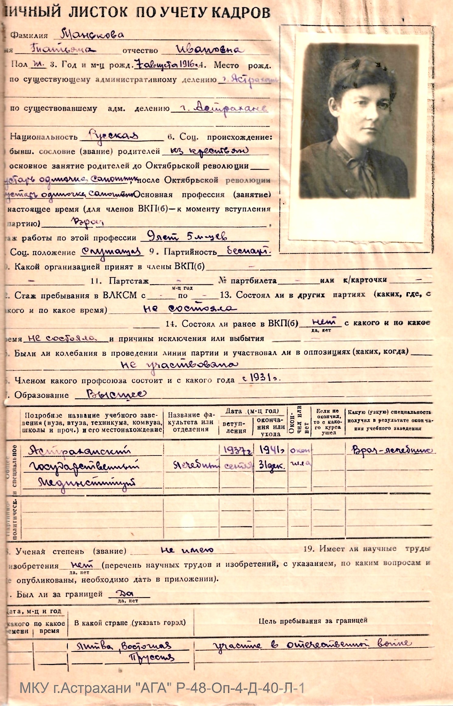 Виртуальная выставка "Скупые строки биографий" (из личных дел работников Астраханского городского отдела здравоохранения – участников Великой Отечественной войны)